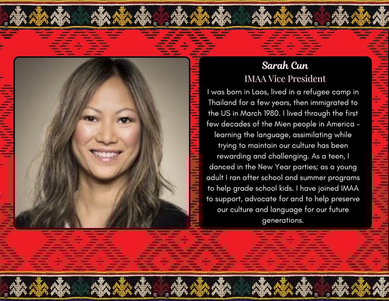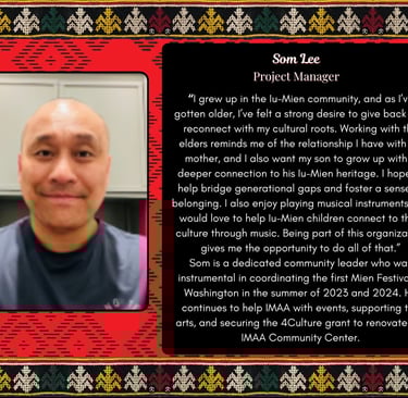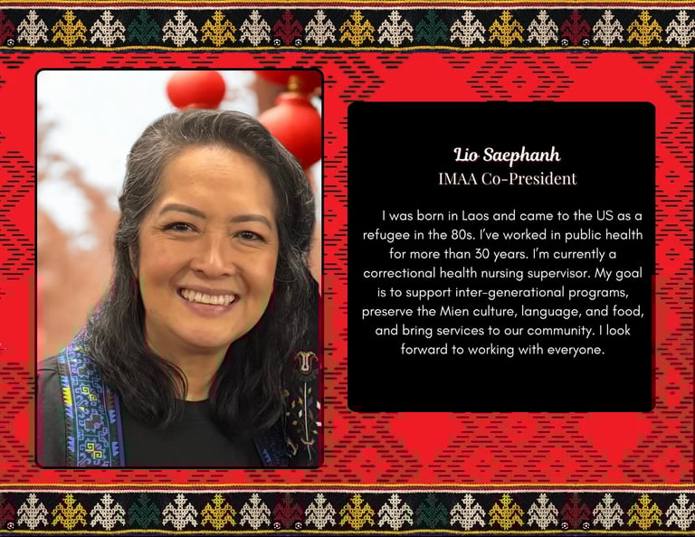Iu-Mien American Association’s goal is to empower the Iu-Mien and broader communities through social services, education, and outreach. IMAA advocates and fosters an inclusive and safe environment that motivates and promotes cultural preservation, provides opportunities to gain visibility, and amplifies the voices of the Iu-Mien and underrepresented or marginalized communities.