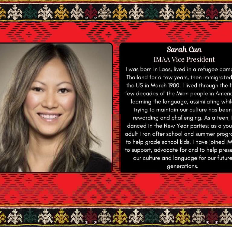 Iu-Mien American Association’s goal is to empower the Iu-Mien and broader communities through social services, education, and outreach. IMAA advocates and fosters an inclusive and safe environment that motivates and promotes cultural preservation, provides opportunities to gain visibility, and amplifies the voices of the Iu-Mien and underrepresented or marginalized communities.
